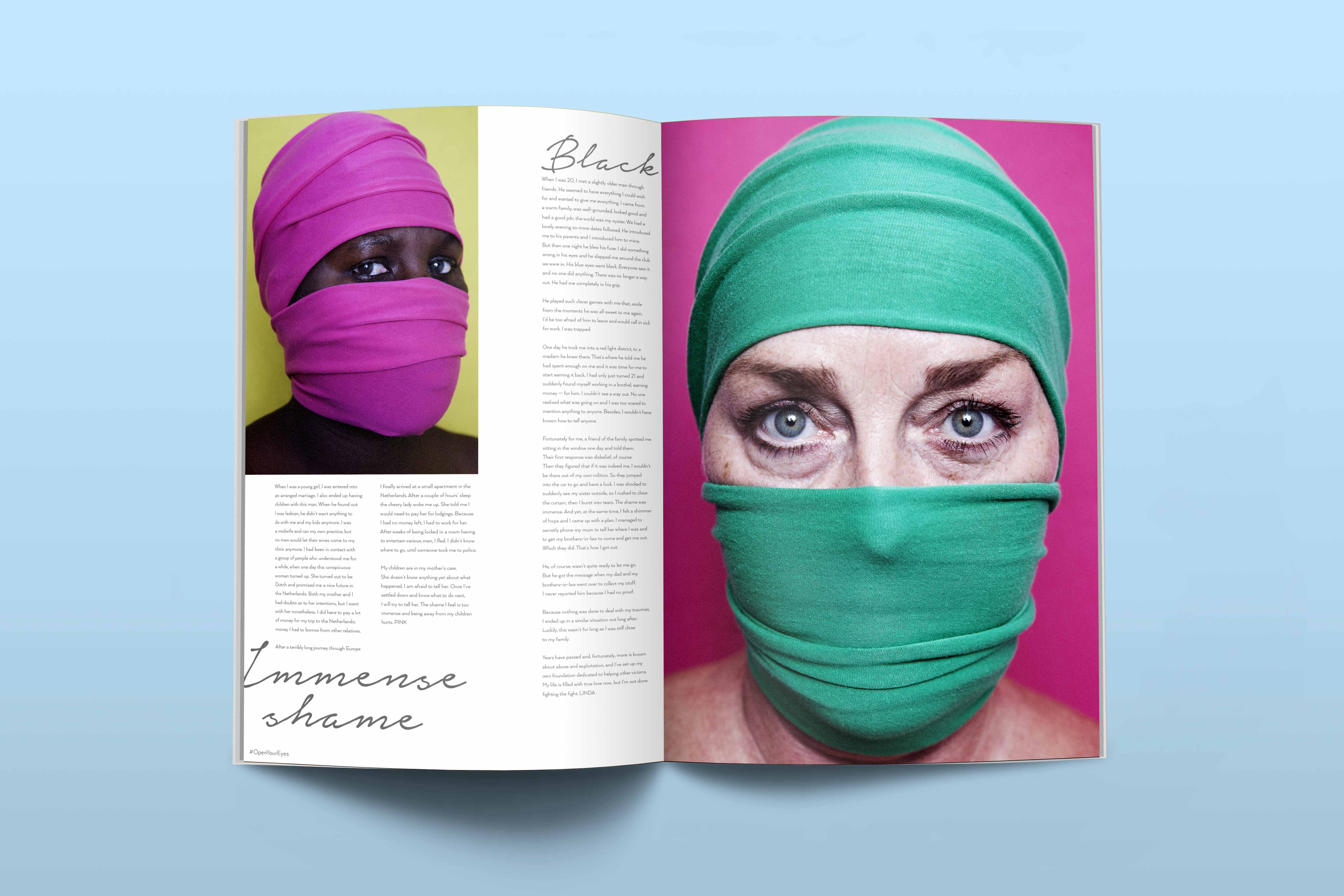 ”This is a campaign to raise awareness around human trafficking, which includes this publication and a travelling exhibition featuring 30 portraits and stories of victims: 30 poignant portraits that personify how human trafficking is happening right under our eyes. The exhibition makes the gravity and diversity of human trafficking in the Netherlands visible in the public space. Our purpose with this is to gain recognition and acknowledgement among the Dutch public. By giving these people a voice, we put a face to the issue of human trafficking. Men and especially women and children are victims of trafficking, including in the Netherlands.”
